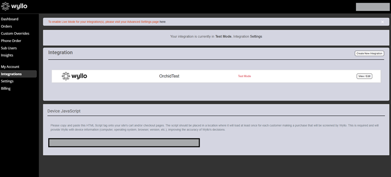 default. To enable Live Mode, visit your Wyllo Advanced Settings
