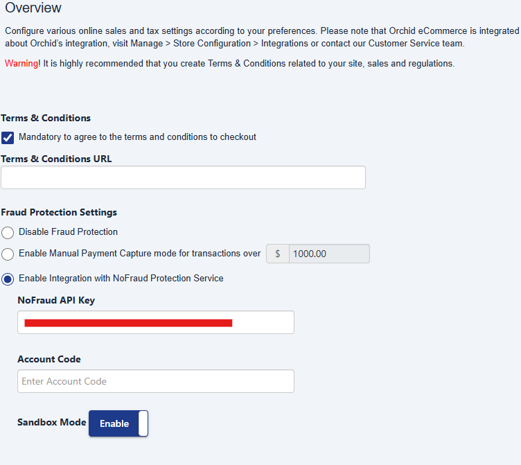 - Transactions will be automatically screened by Nofraud for fraud risk.